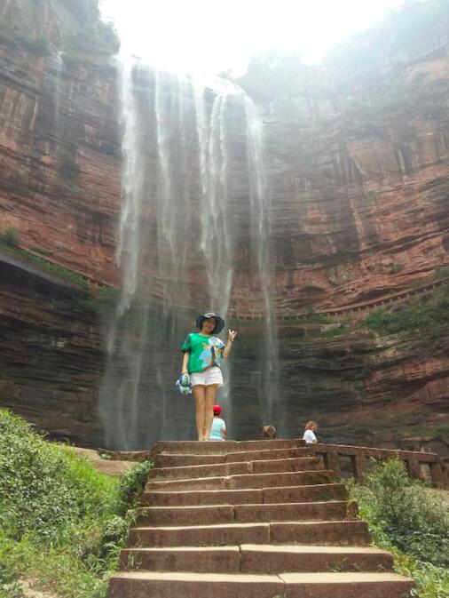 來到谷底,就到了瀑布的腳下,一潭清澈的泉水展現(xiàn)在眼前。瀑布飛瀉濺起的水花四處飛散,四周的空氣特別濕潤,一陣陣涼氣襲來,感覺很舒適。最著名的是望鄉(xiāng)臺瀑布,氣勢磅礴,高151米(比貴州著名黃果樹瀑布高出一倍),寬37米余,水聲如雷,震撼山谷,稱為華夏第一高瀑布。飛流直下的水流落到谷底的巖石上,濺起的水花形成一團團水霧似涌動的白云。陽光照在瀑布的水霧上,形成一道天然的彩虹。遠遠地就能感覺到瀑布水花,稍微靠近一點便會濺濕你的衣服。站在瀑布附近,在微風中享受飛來的水花的滋潤,又是另一種享受。