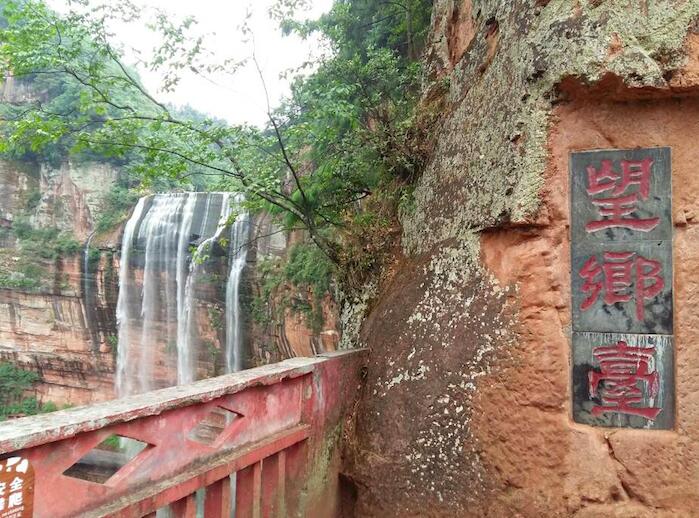 山區(qū)旅游,不是上山,便是下溝,很少有平坦的大道。景區(qū)內瀑布很多,大大小小的瀑布有23處之多,又被稱為瀑布之鄉(xiāng)。水口寺瀑布很高,水流從山頂奔流而下,真有“飛流直三千尺”氣勢。半山腰有一條棧道,走棧道可以攔腰觀瀑布。站在瀑布背后,一掛水簾映在眼前,可望而不可及。